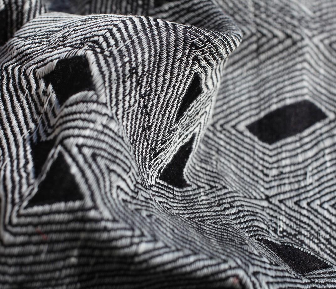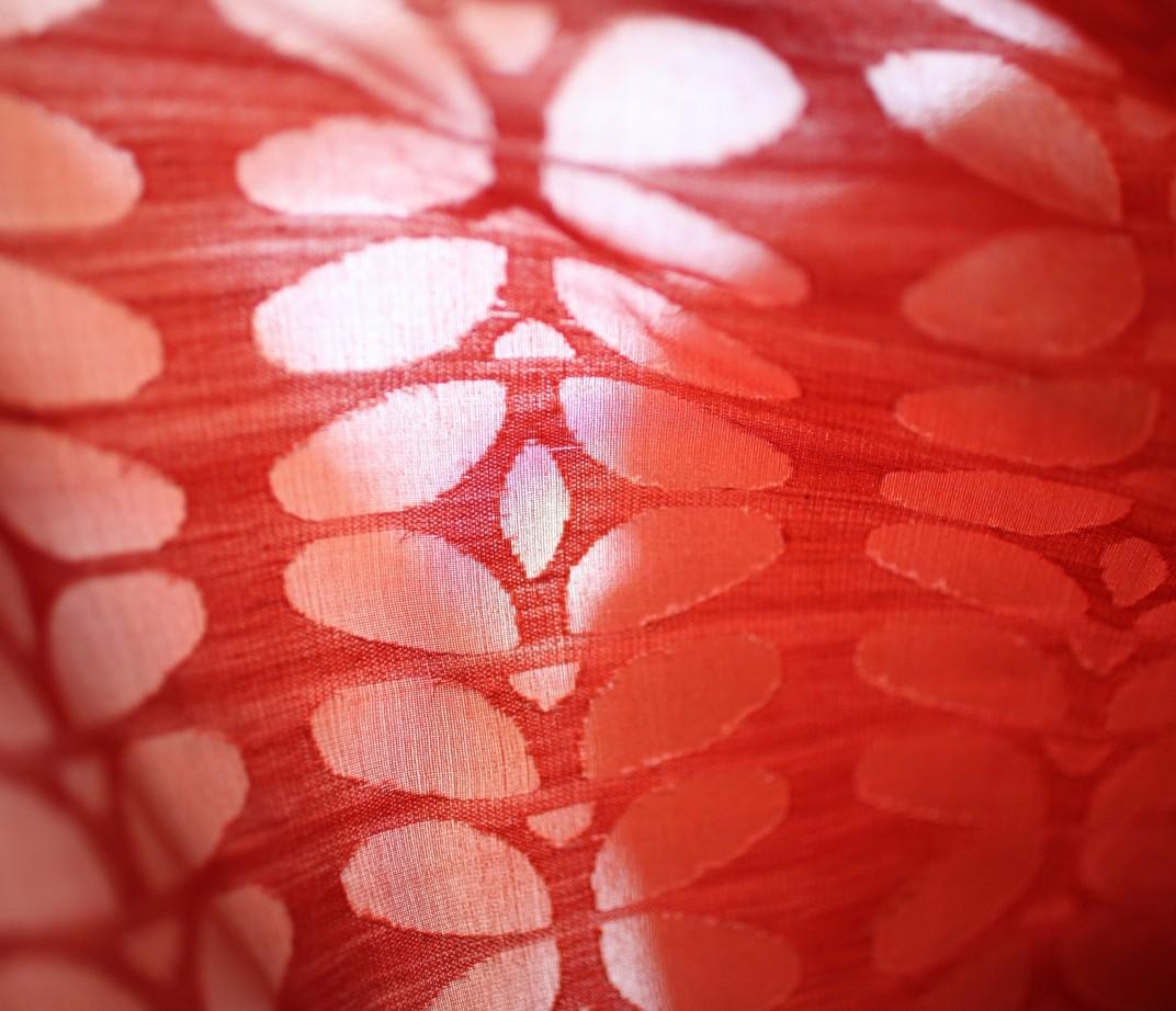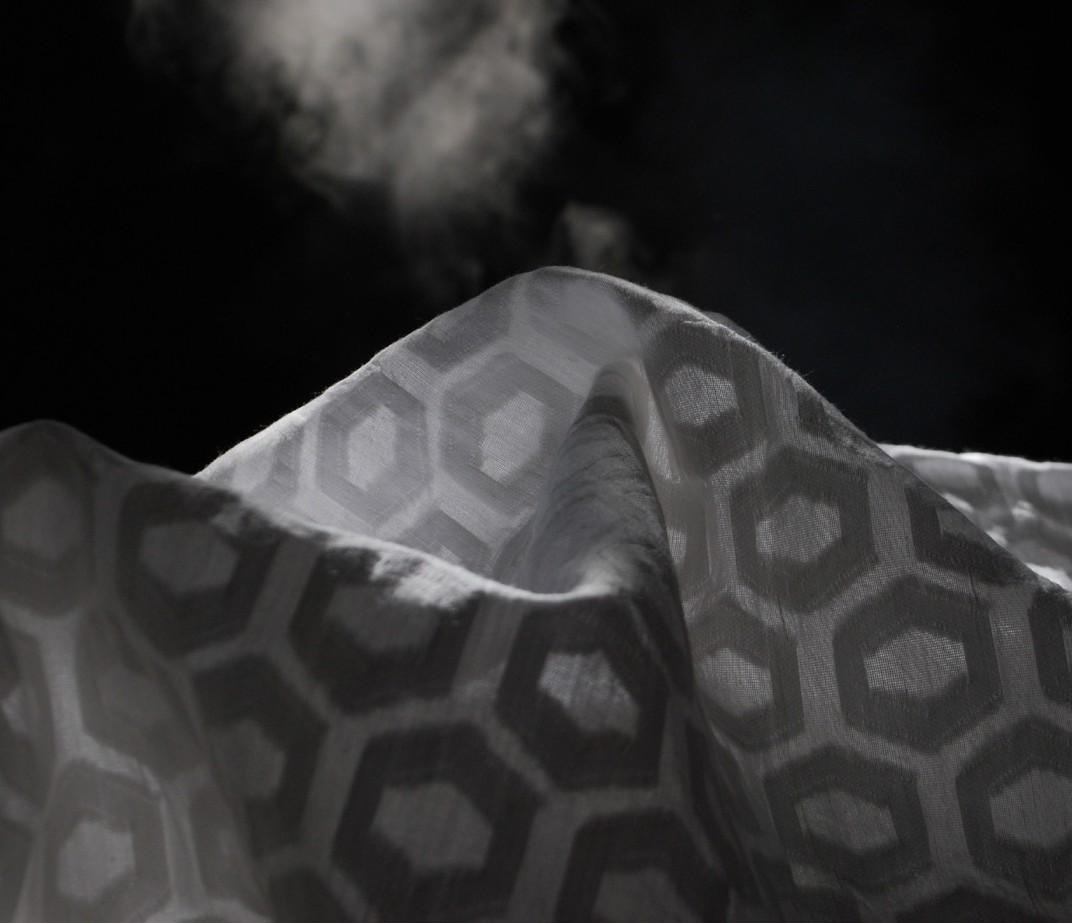 Cutwork refers to a post-weave process of cutting floats on the fabric to enhance the motif design, creating texture and variations in the opacity of the fabric. Generally, our cutwork is completed by women in the vil- lages.
